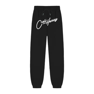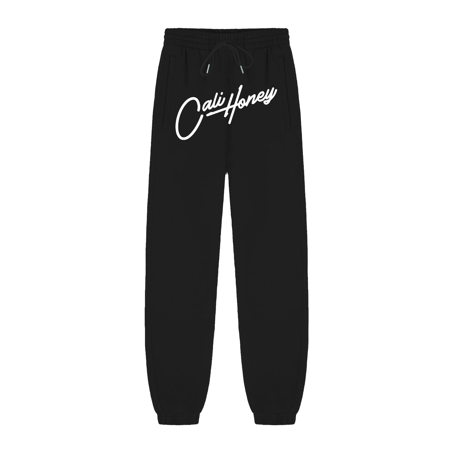French terry without fleece 100% cotton 9oz black sweatpants with front and back puff screen print.
