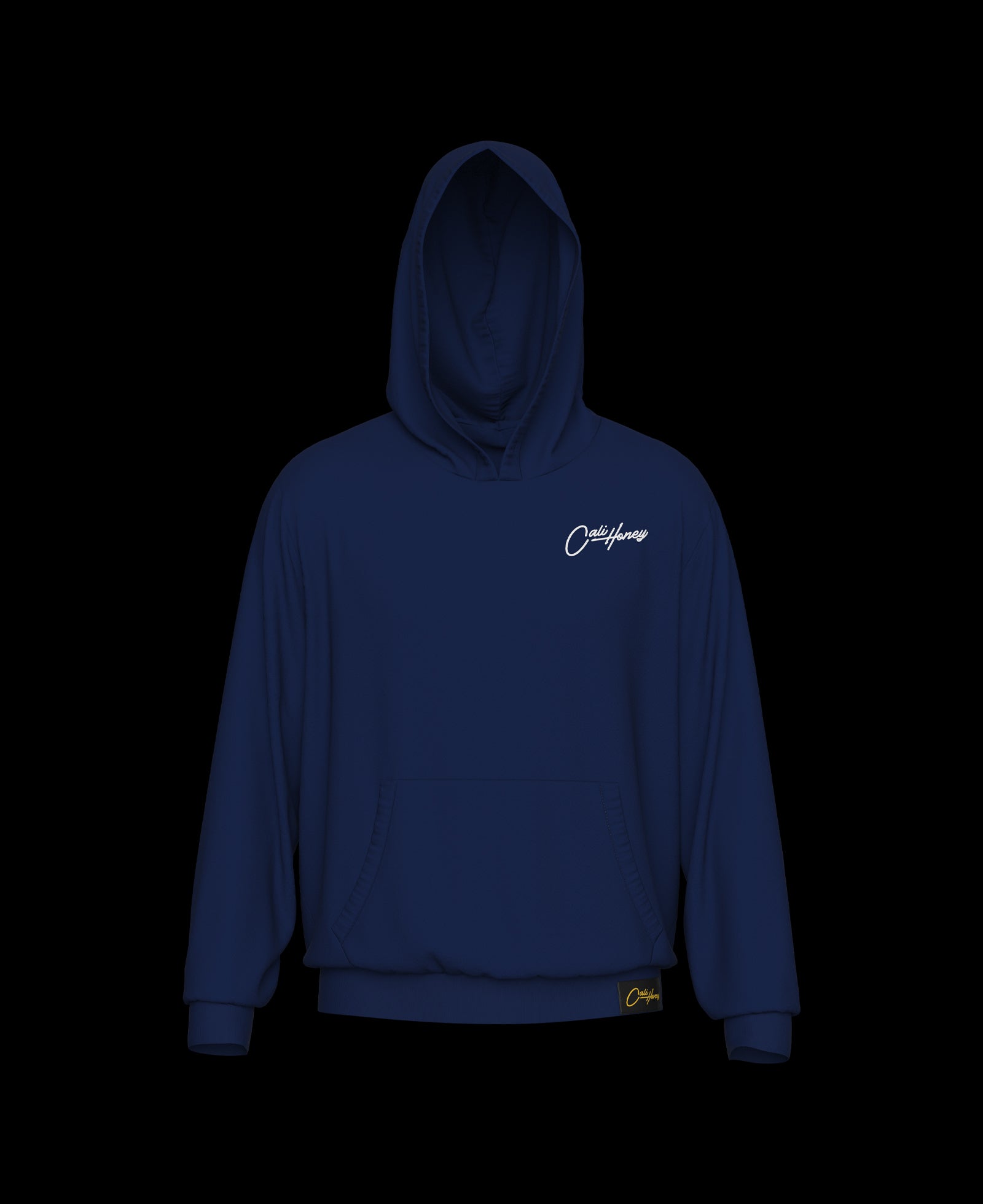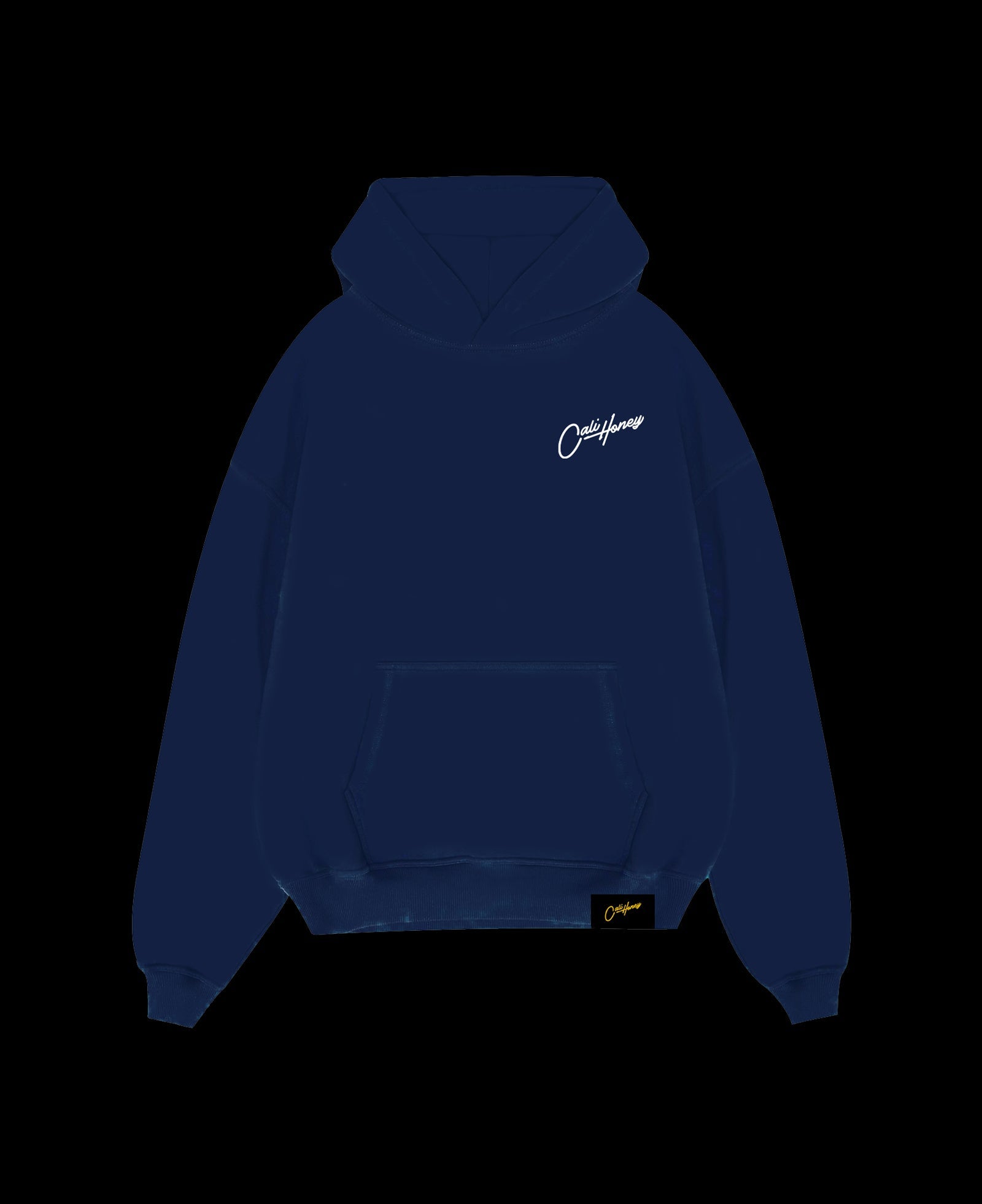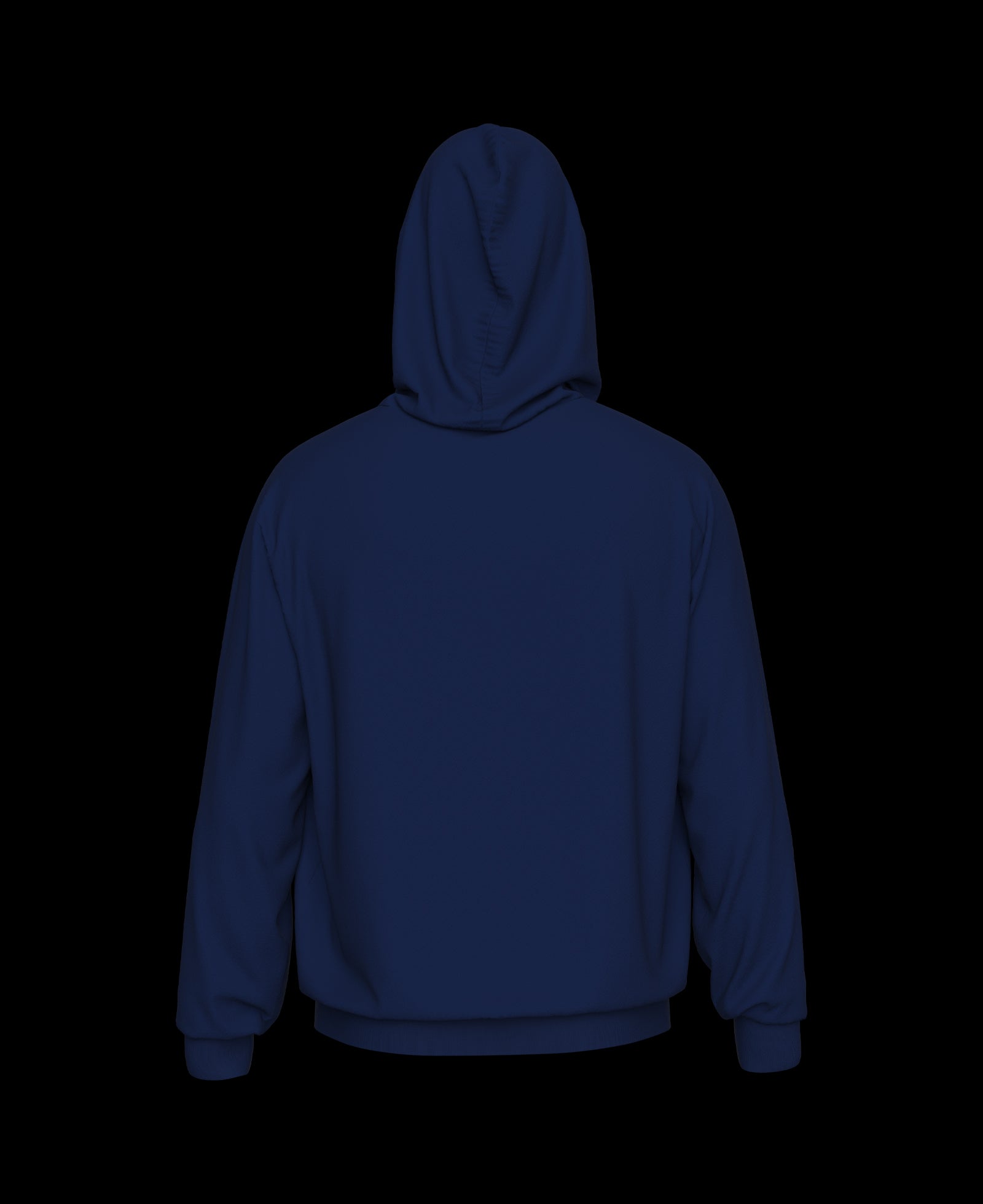 French terry without fleece 100% cotton 12 oz Navy hoodie with front puff screen print.