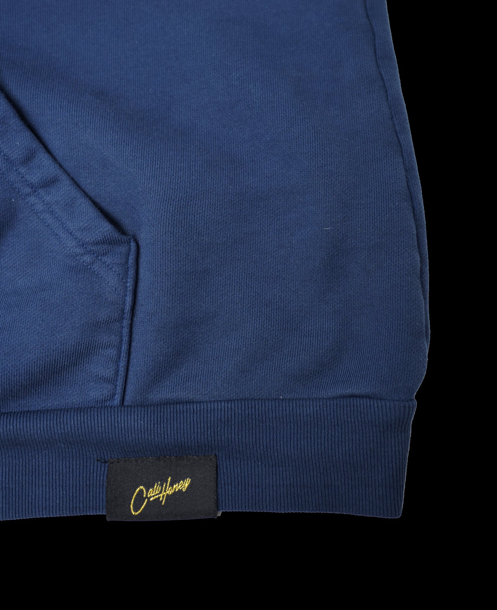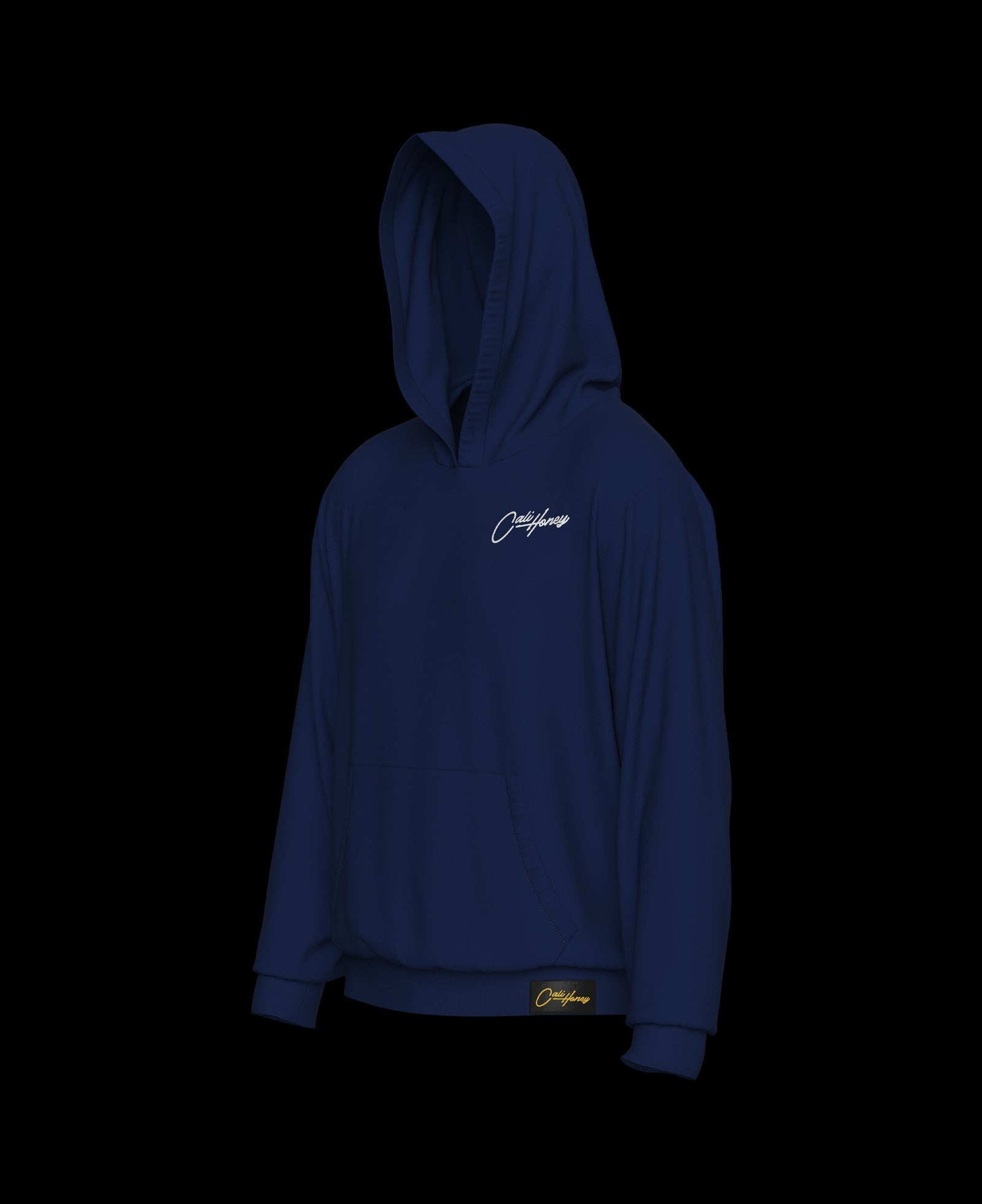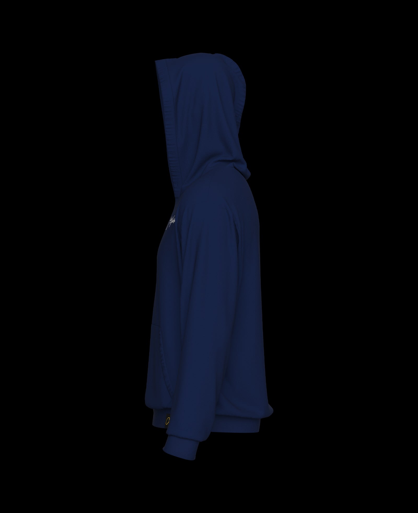 French terry without fleece 100% cotton 12 oz Navy hoodie with front puff screen print.