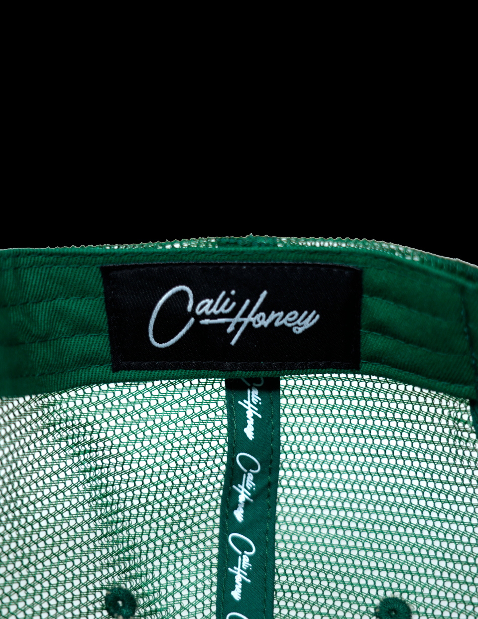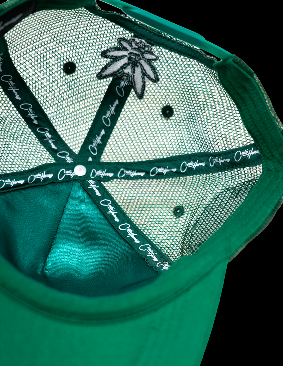 Premium polyester for front panels and brim, mesh for side/back panels.