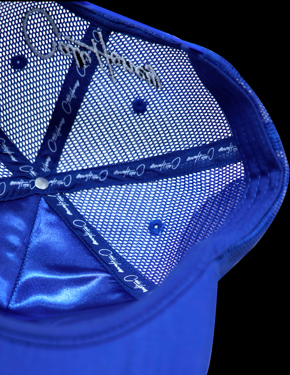 Premium polyester for front panels and brim, mesh for side/back panels.