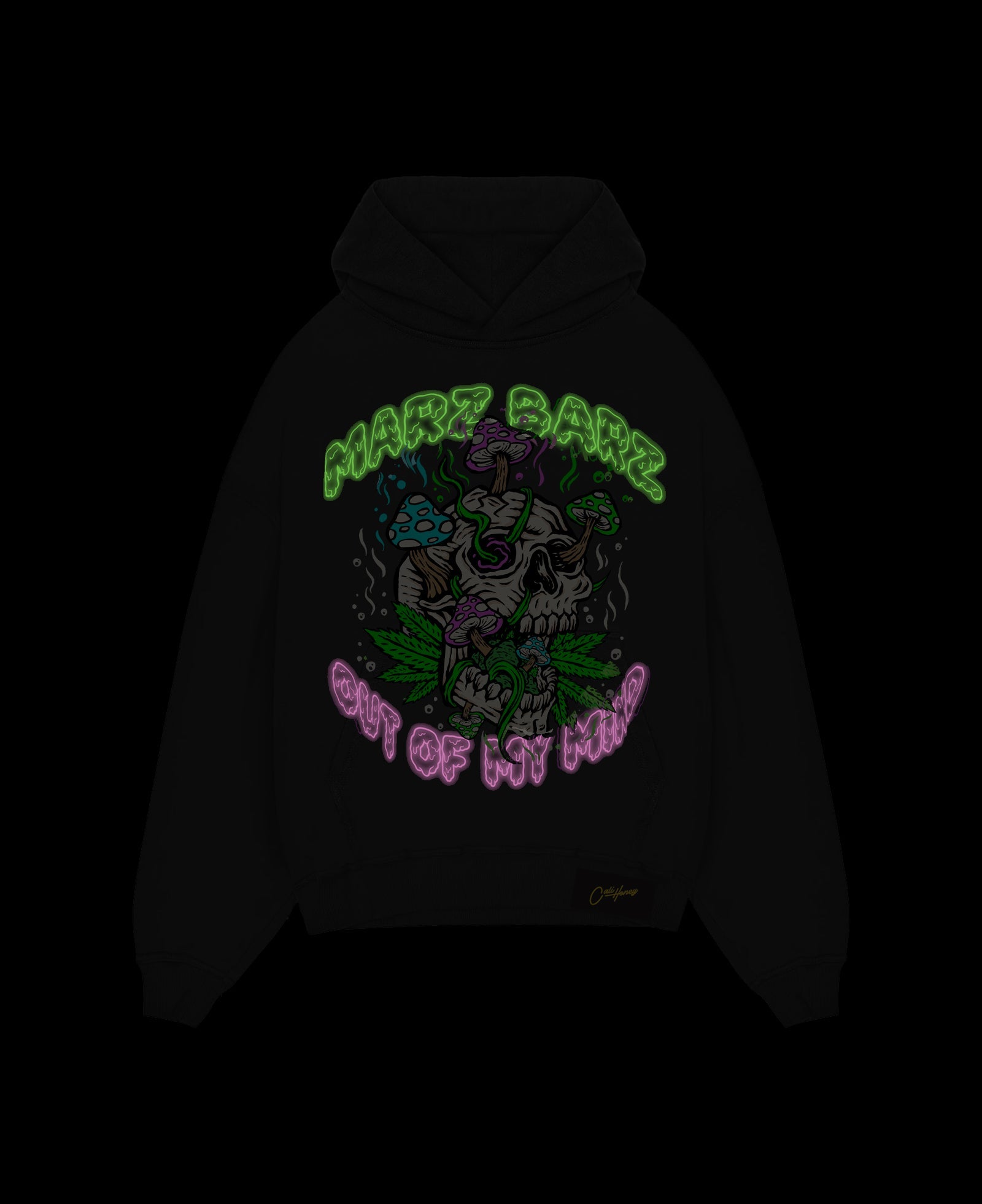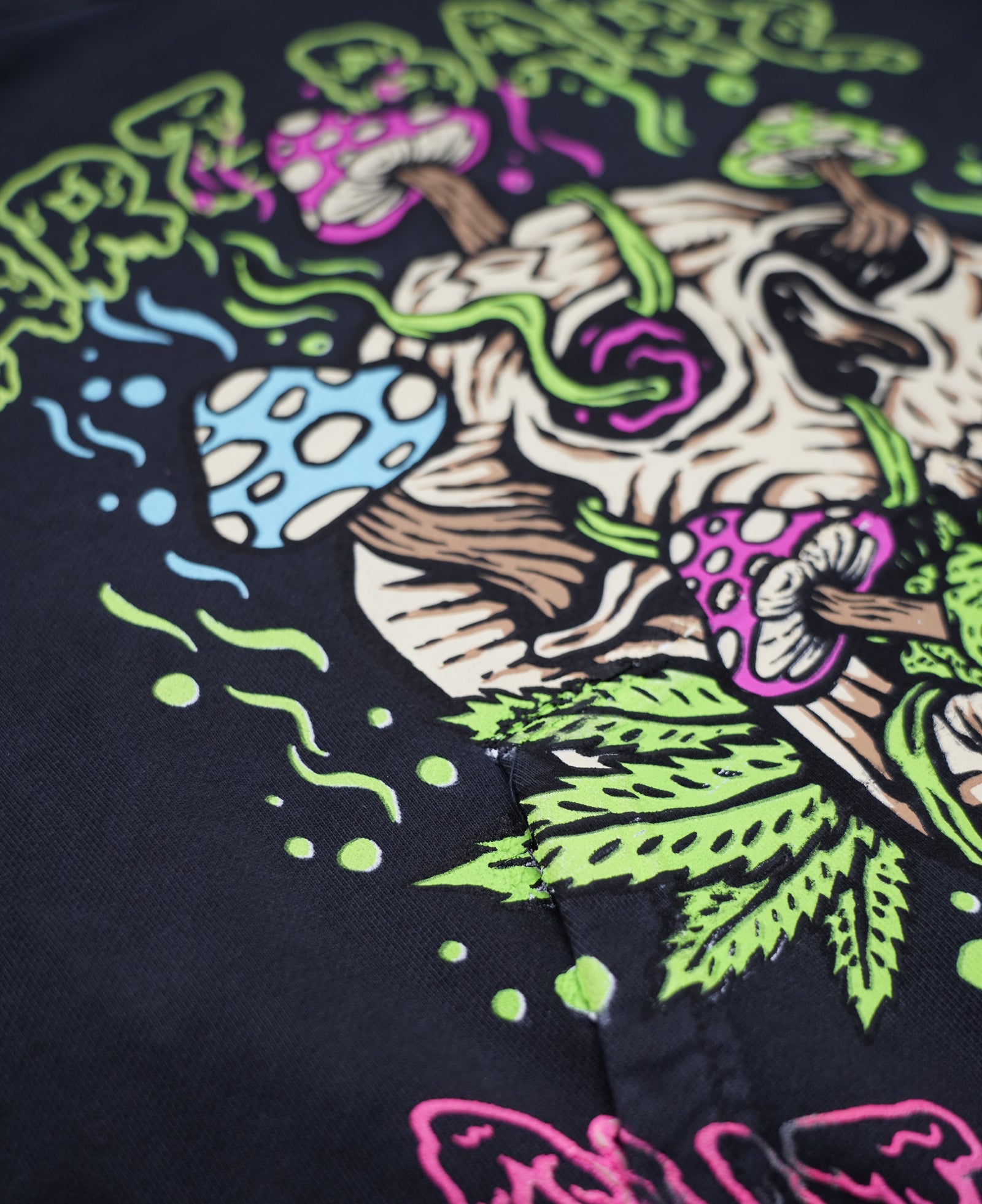 French terry without fleece 100% cotton 12 oz vintage black hoodie with front screen print.