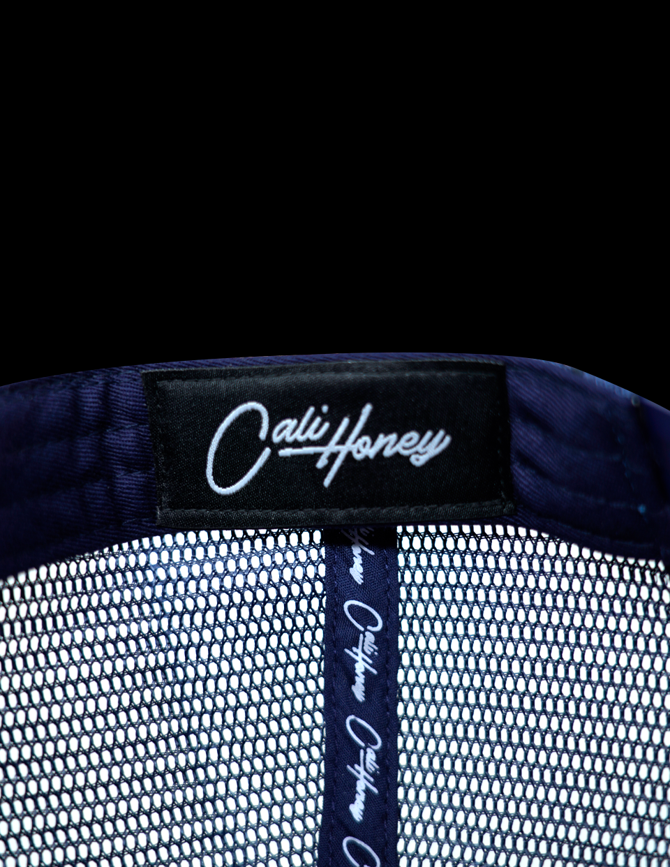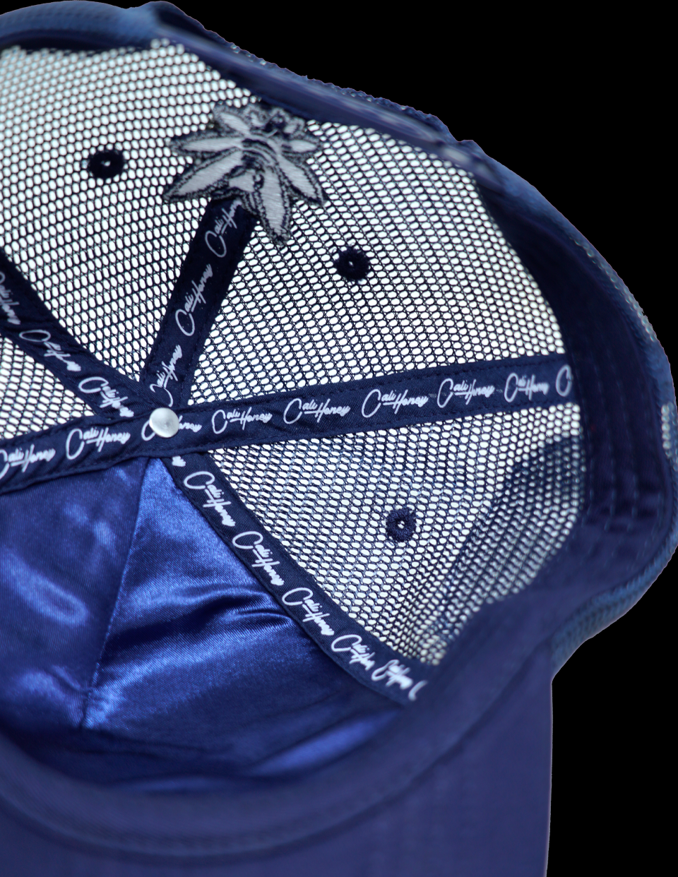 Premium polyester for front panels and brim, mesh for side/back panels.